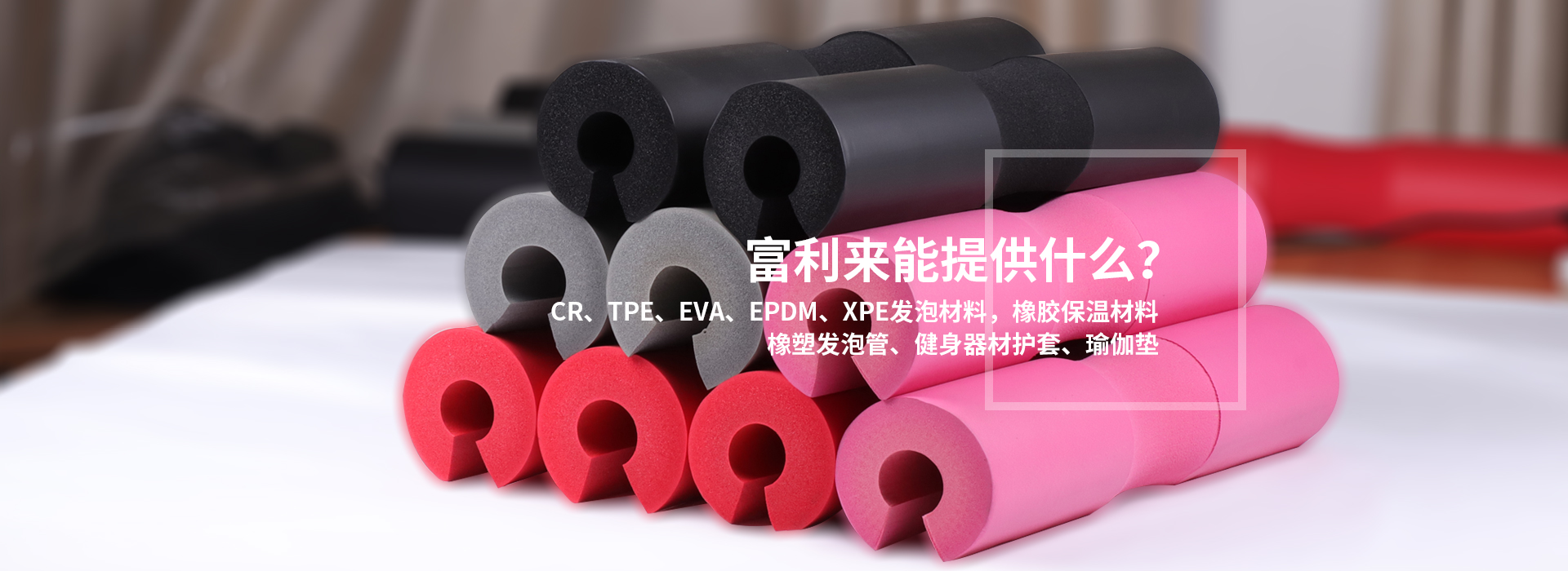 主要产品:CR、TPE、EVA、EPDM、XPE发泡材料,橡胶保温材料、橡塑发泡管、健身器材护套、瑜伽垫等
